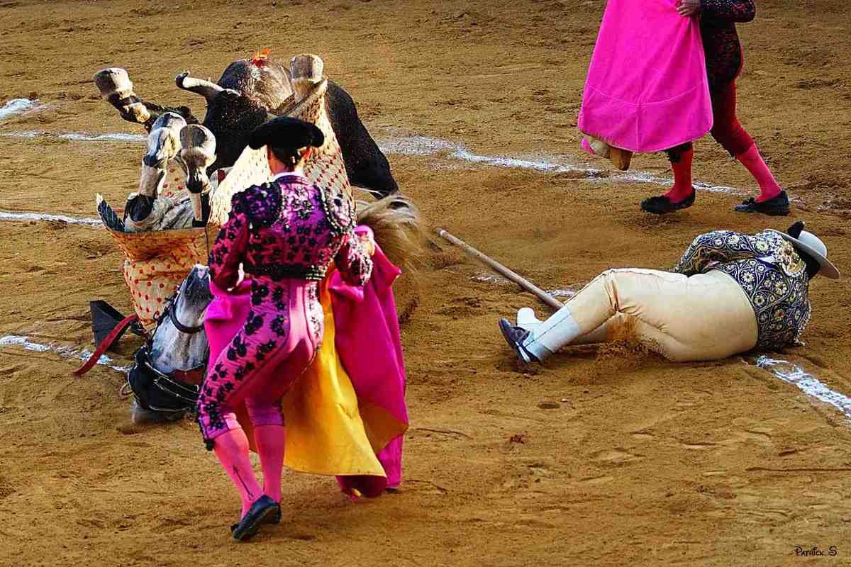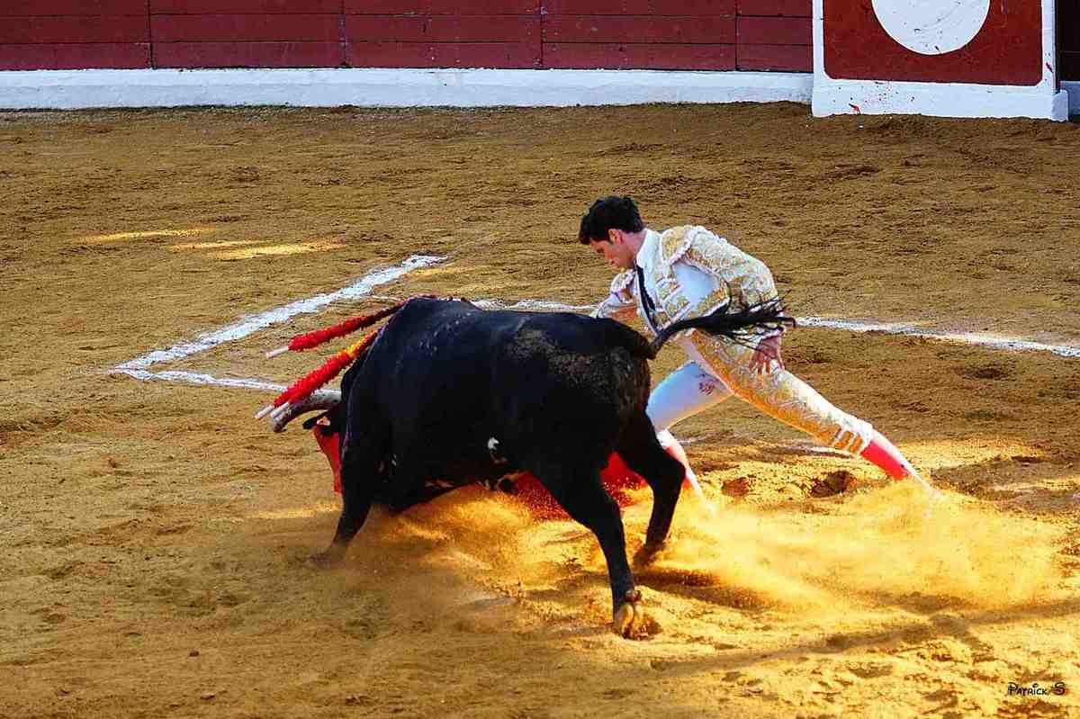 2 rencontres dont la première en mettant les reins. T. Campos tout heureux de profiter de la bonne corne gauche, enchaîna des séries allurées des deux mains. Terminant par des derechazos et pecho, la température du Pesqué augmenta. Une épée jusqu’à la garde : 1 oreille, forte pétition de la seconde… elle choit !